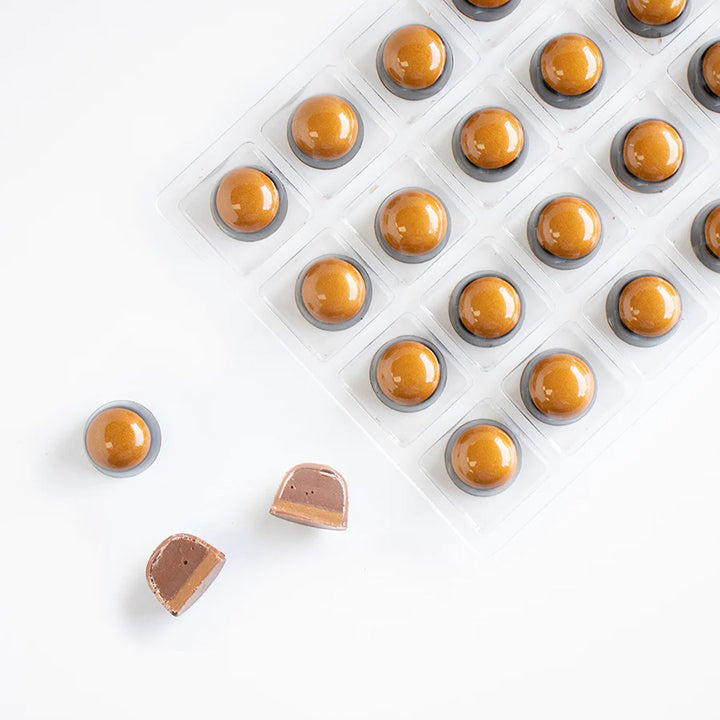 This tray of twenty-four bonbons is all one flavor. The size and coloration may change according to availability. These bonbons are made from scratch by hand. The highest quality ingredients are used. The freshness is easily noticed from the moment that the taste experience starts.